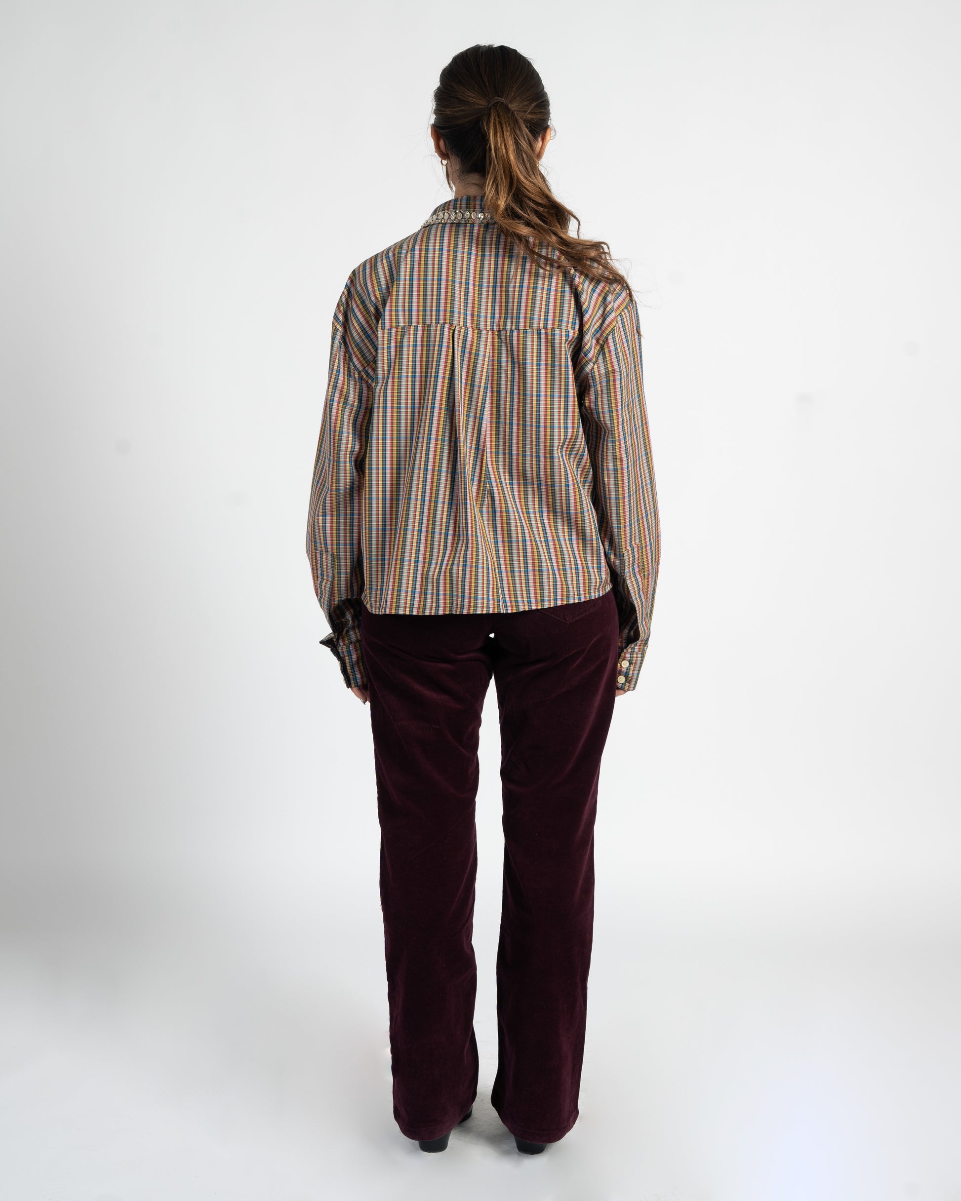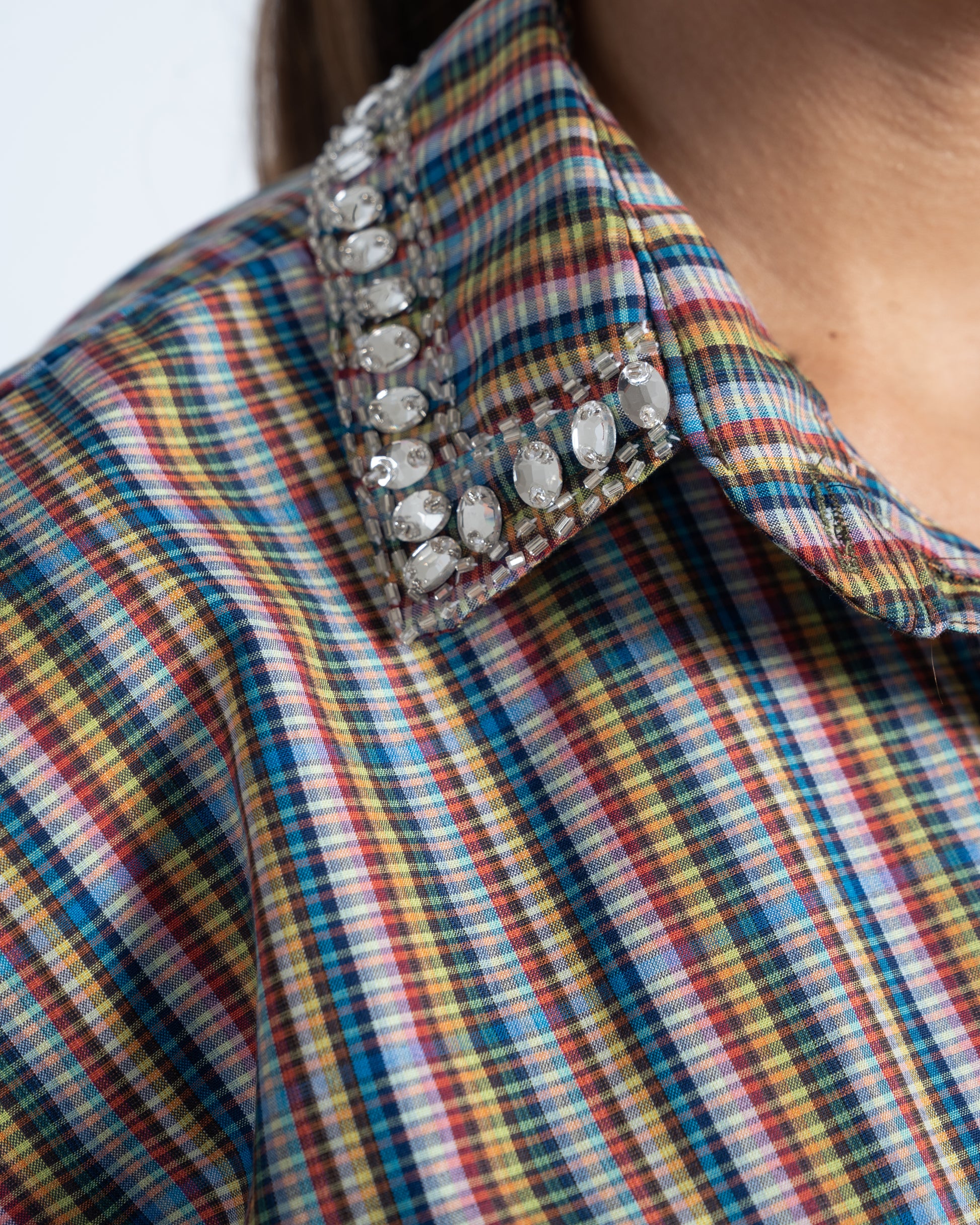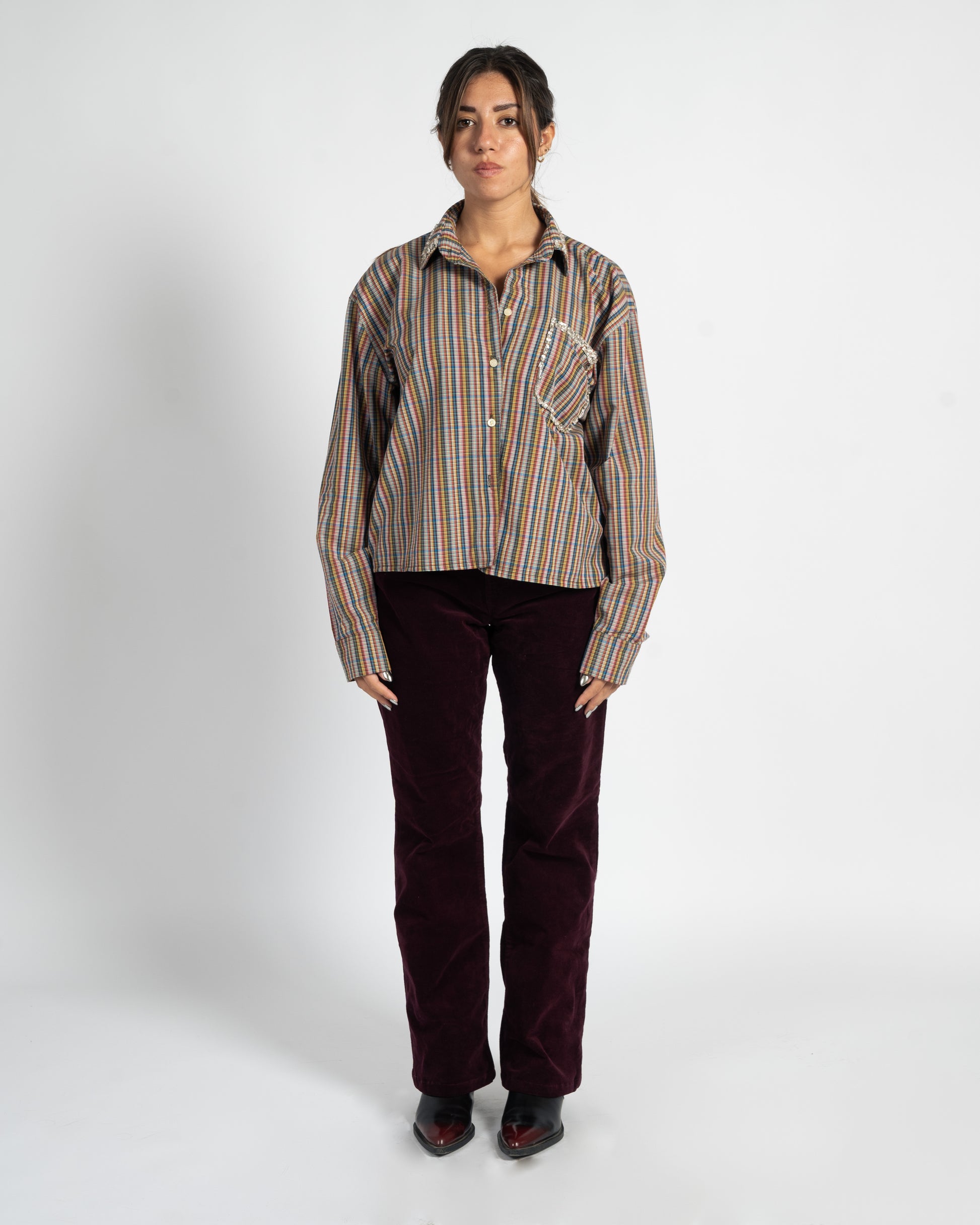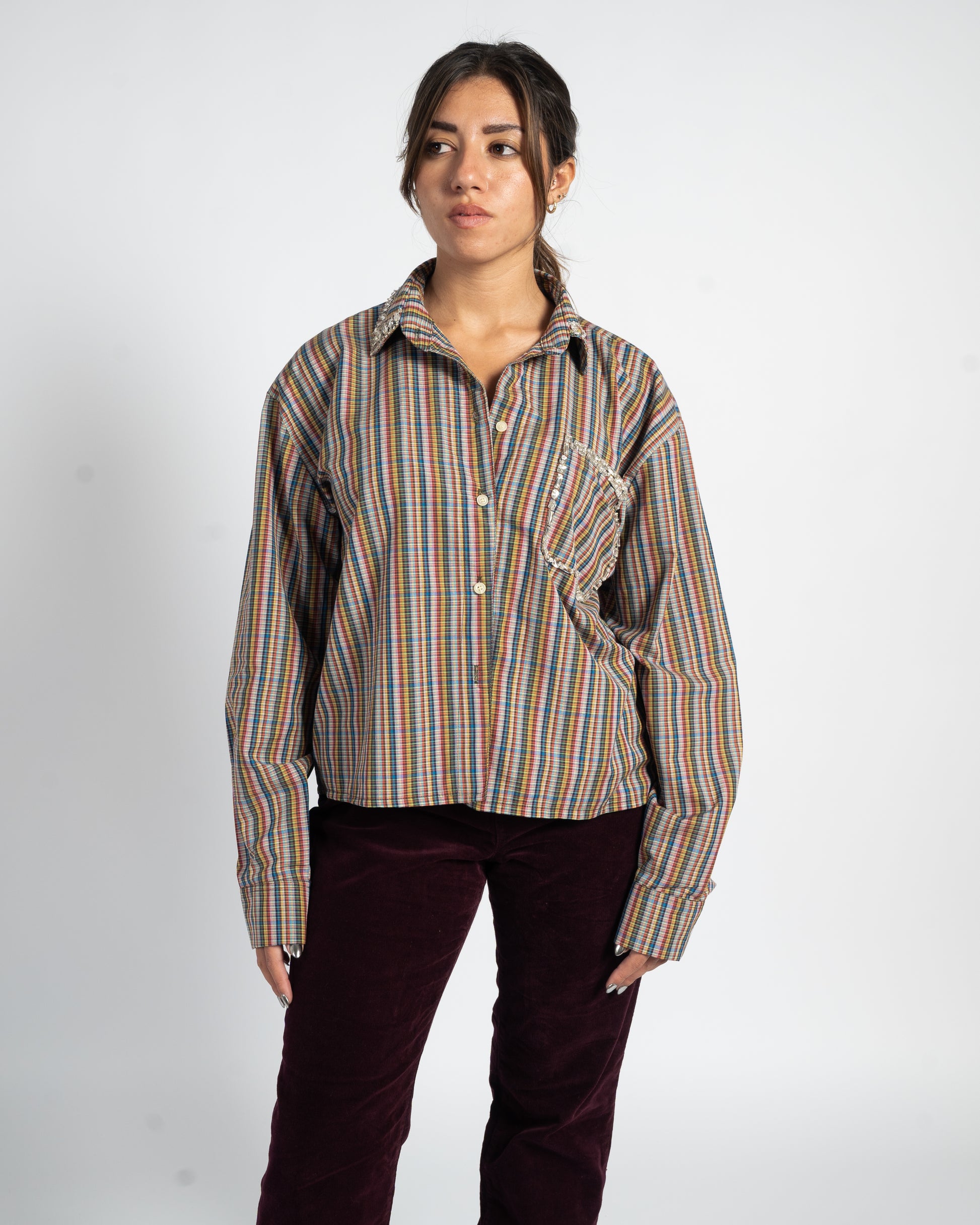 Effortlessly transition from day to night with the After Hours Shirt — your go-to piece for elevated everyday style. Crafted from 100% breathable cotton, this shirt features a relaxed oversized fit with elegantly curved sides for a flattering silhouette. A delicately embroidered collar and front pocket adorned with hand-placed gems and beads, adding just the right touch of sparkle for those after-hours moments.