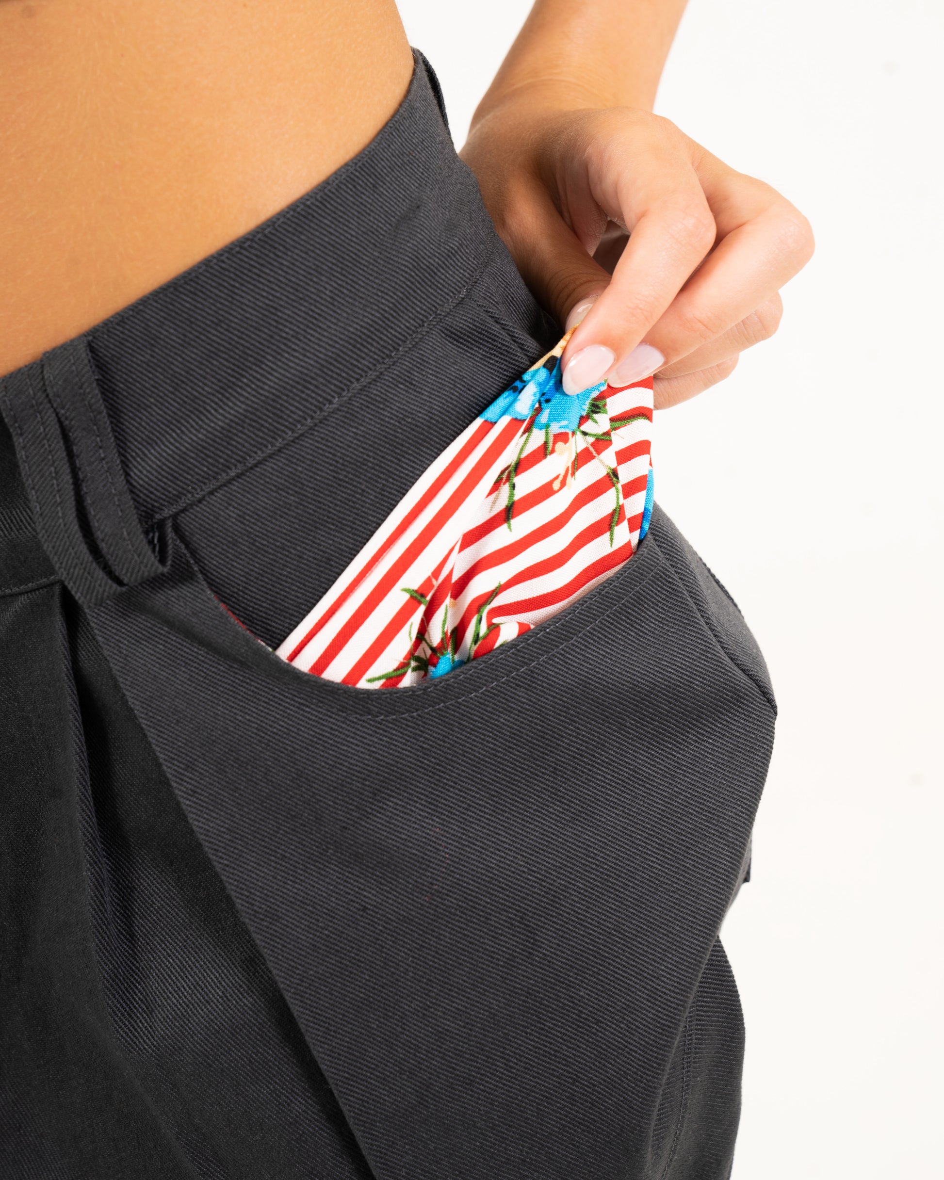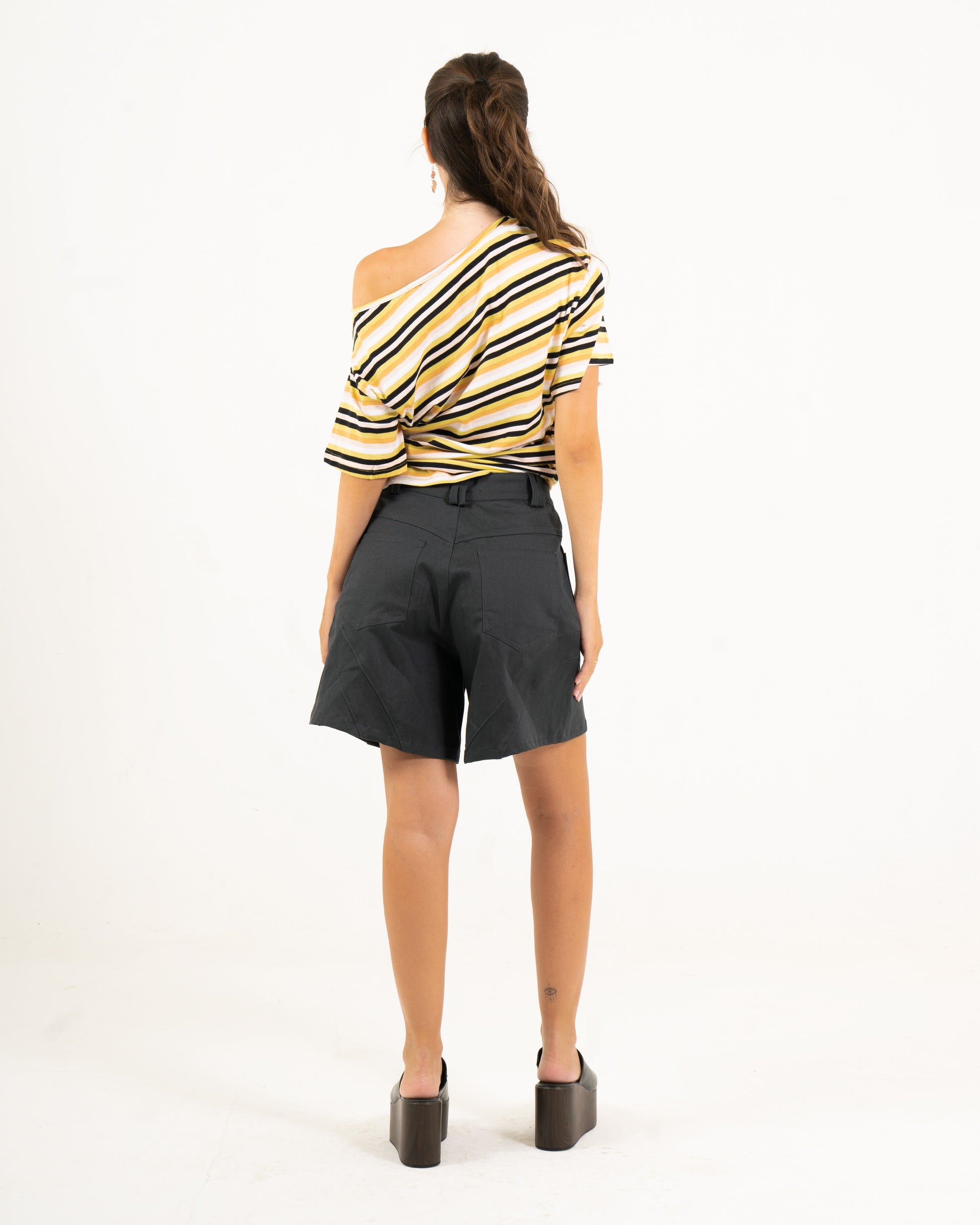 The Panel Jorts bring structure and playfulness together with sharp pleats and bold side panel detailing. Designed in a charcoal grey hue, they feature double-hoop belt loops for a statement finish and a relaxed, versatile fit.